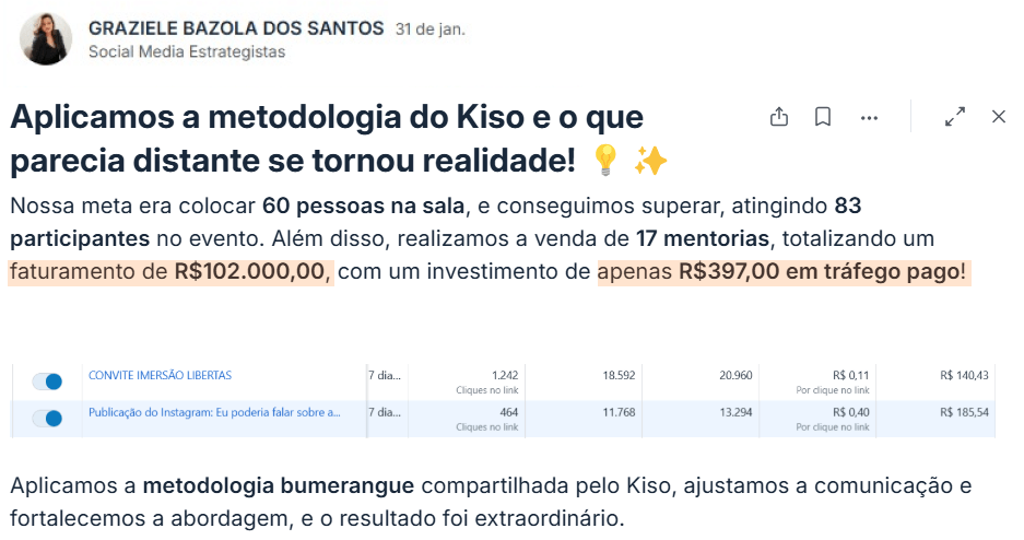 “Fiz diversos cursos, alguns que prometiam soluções milagrosas para ficar rico, mas eu nunca consegui encaixar isso no meu nicho. Depois da metodologia do Kiso, eu saí de R$3.462 de faturamento para R$73.194 em 3 meses.”